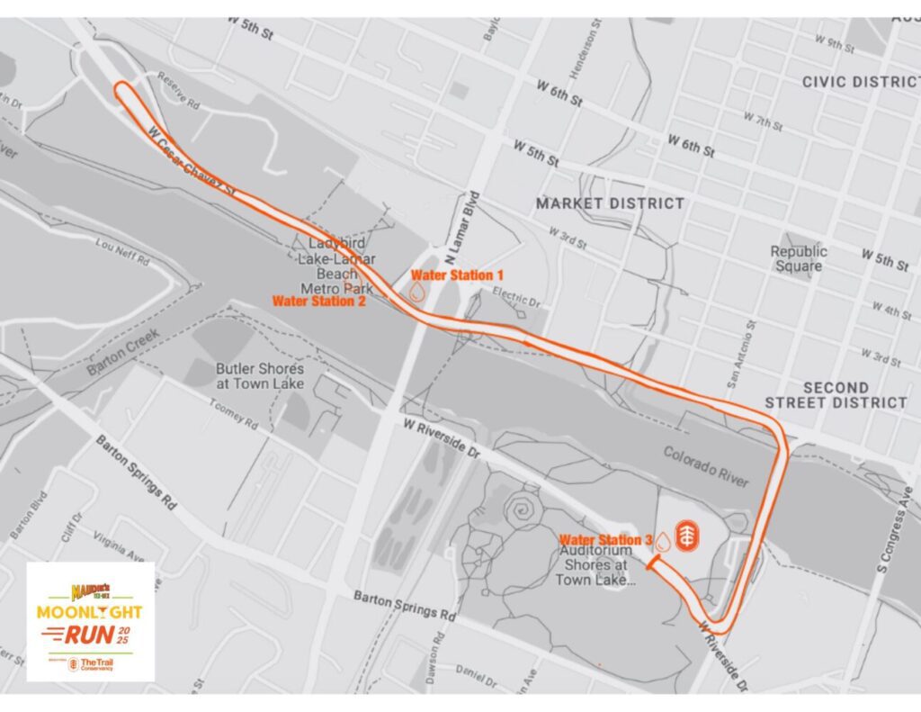 This year, the 5K run will leave from Auditorium Shores – traveling into downtown and alongside Lady Bird Lake and the Butler Trail on Cesar Chavez before looping around at MoPac and returning to Auditorium Shores for the Finish Line Party.